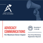 Join us for our upcoming series of FREE Advocacy Workshops, designed to help you build your advocacy skills and strengthen your organization at the same time. These workshops are offered virtually and free of charge, but registration is required. More information about each workshop is below.